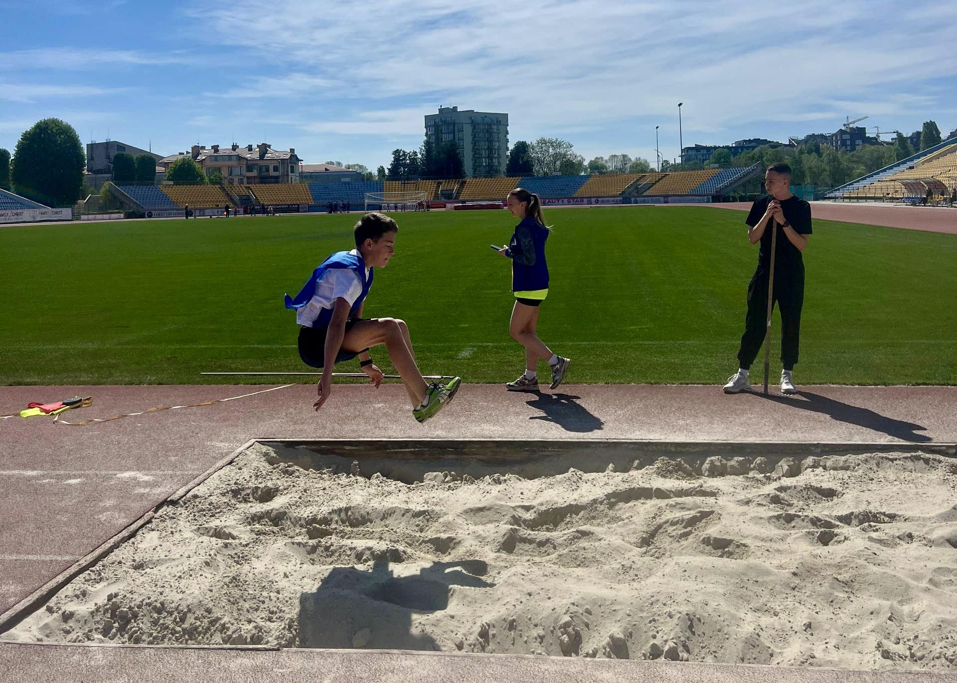 Стадіон «Авангард» став сьогодні ареною спортивних баталій – тут відбулися змагання з легкоатлетичного чотириборства серед учнів 5-9 класів у межах 3 (міського) етапу проєкту «Пліч-о-пліч всеукраїнські шкільні ліги».